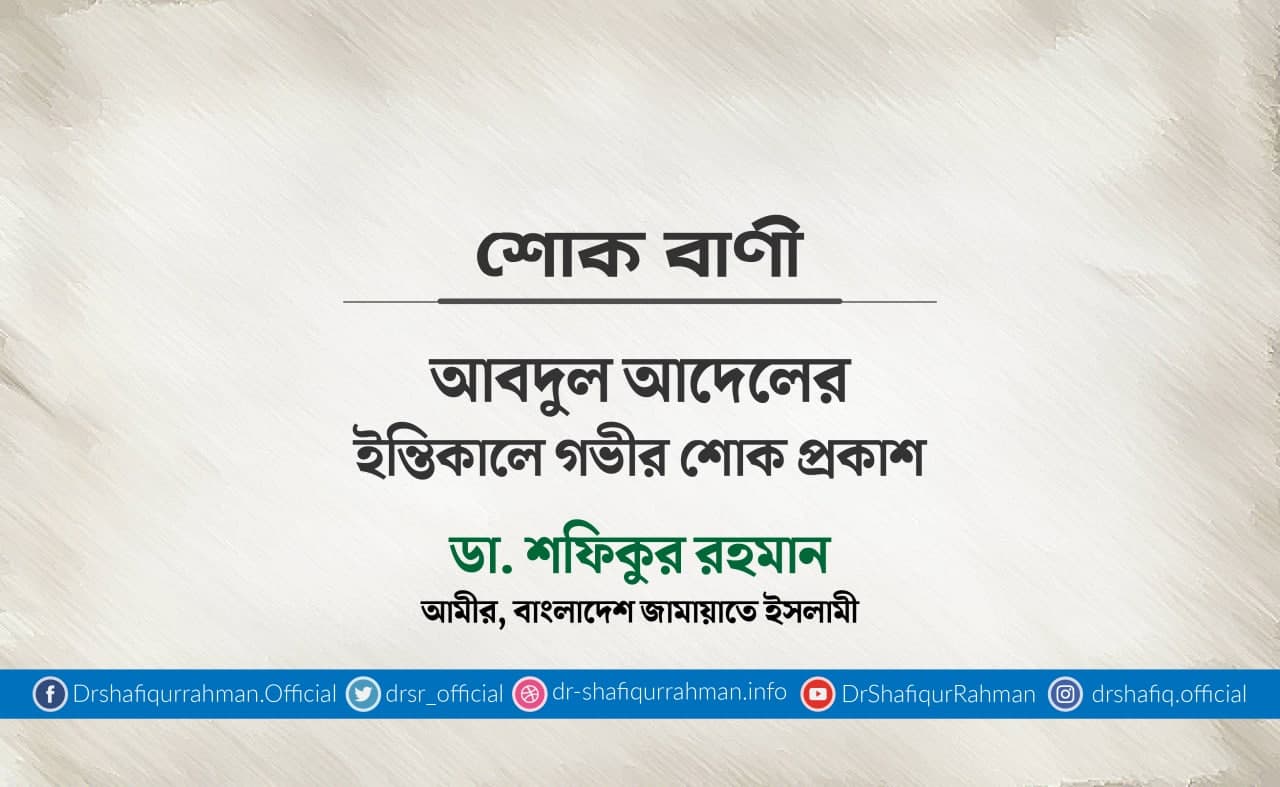 জনাব আবদুল আদেলের ইন্তিকালে গভীর শোক প্রকাশ করে বাংলাদেশ জামায়াতে ইসলামীর আমীর ডা. শফিকুর রহমান ২৬ ডিসেম্বর ২০২০ এক শোকবাণী প্রদান করেছেন।