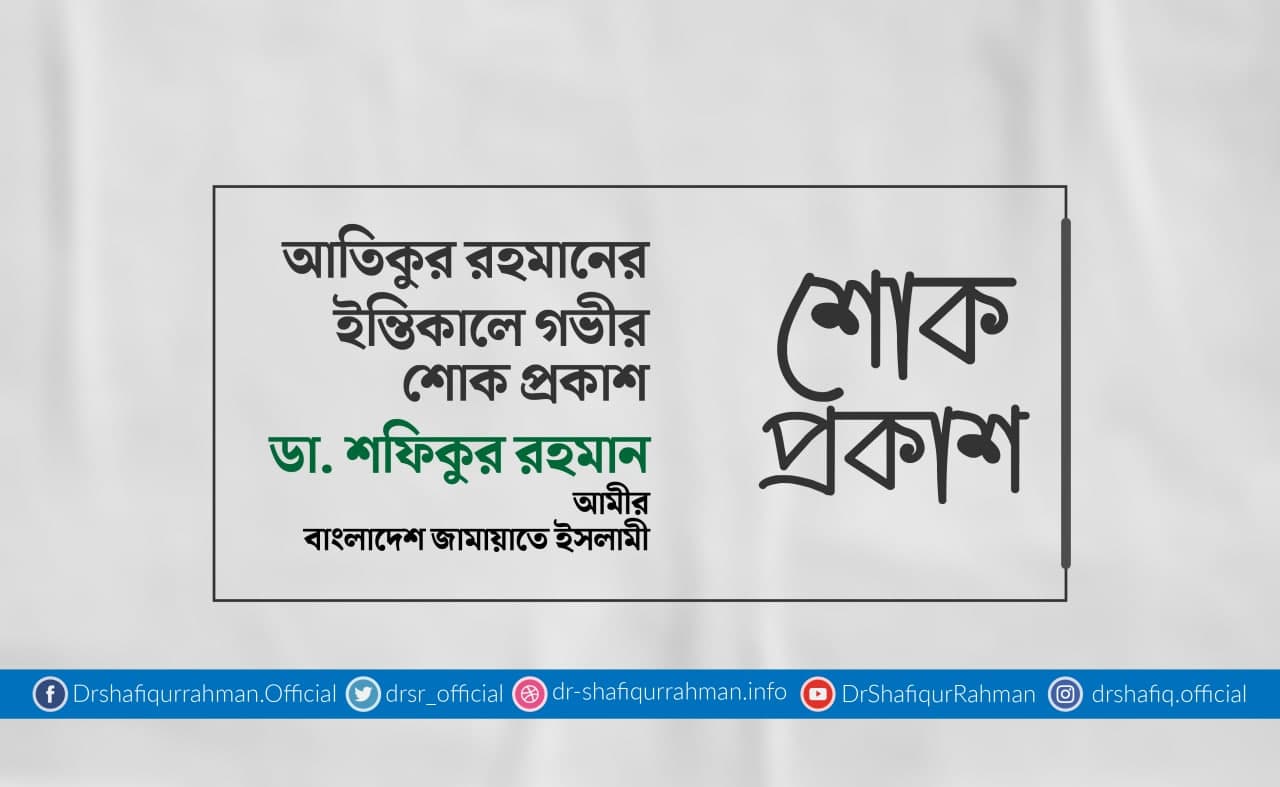 জনাব আতিকুর রহমানের ইন্তিকালে গভীর শোক প্রকাশ করে বাংলাদেশ জামায়াতে ইসলামীর আমীর ডা. শফিকুর রহমান ২৭ ডিসেম্বর ২০২০ এক শোকবাণী প্রদান করেছেন।