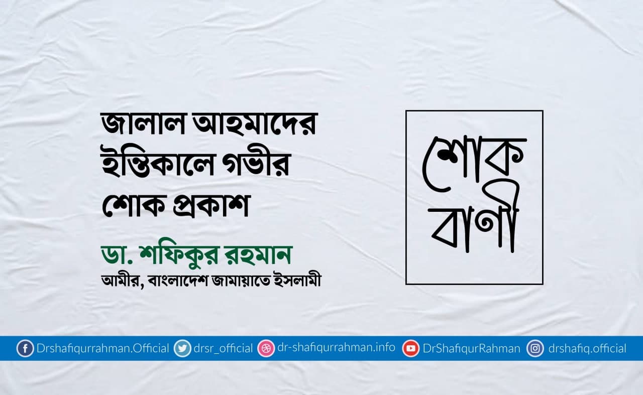 জনাব জালাল আহমাদের ইন্তিকালে গভীর শোক প্রকাশ করে বাংলাদেশ জামায়াতে ইসলামীর আমীর ডা. শফিকুর রহমান ০২ মে ২০২১ এক শোকবাণী প্রদান করেছেন।
