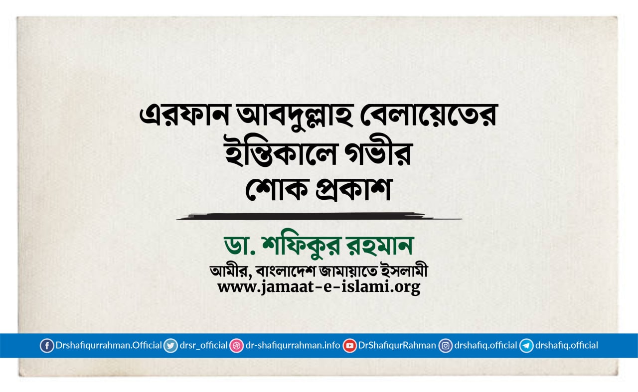 এরফান আবদুল্লাহ বেলায়েতের ইন্তিকালে গভীর শোক প্রকাশ করে বাংলাদেশ জামায়াতে ইসলামীর আমীর ডা. শফিকুর রহমান ৬ নভেম্বর ২০২২ এক শোকবাণী প্রদান করেছেন।