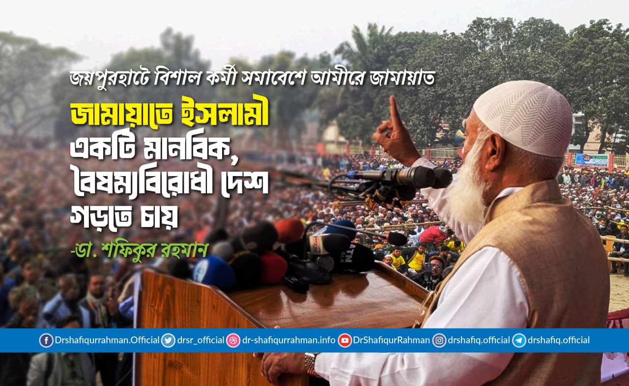 ৩০ জানুয়ারি বৃহস্পতিবার বিকেলে জয়পুরহাট সার্কিট হাউস মাঠে বিশাল এক কর্মী সমাবেশে প্রধান অতিথি’র বক্তব্যে তিনি এসব কথা বলেন। জয়পুরহাট জেলা জামায়াতে ইসলামীর উদ্যোগে এ কর্মী সম্মেলনের আয়োজন করা হয়। জয়পুরহাট জেলা জামায়াতের আমীর ডা: ফজলুর রহমান এর সভাপতিত্বে ও জয়পুরহাট জেলা জামায়াতের সেক্রেটারি গোলাম কিবরিয়া মন্ডল এর সঞ্চালনায় বিশেষ অতিথি’র বক্তব্য দেন সহকারী সেক্রেটারি জেনারেল ও বগুড়া অঞ্চল পরিচালক মাওলানা রফিকুল ইসলাম খান, বগুড়া অঞ্চল টিম সদস্য অধ্যাপক মাও: আব্দুর রহিম ও অধ্যাপক মোঃ নজরুল ইসলাম, বগুড়া শহর জামায়াতের আমীর মোঃ আবিদুর রহমান সোহেল, বগুড়া জেলা আমীর অধ্যক্ষ মাওলানা আব্দুল হক, সিরাজগঞ্জ জেলা আমীর শাহিনুর আলম, দিনাজপুর জেলা জামায়াতের সেক্রেটারি ড. এনামুল হক।