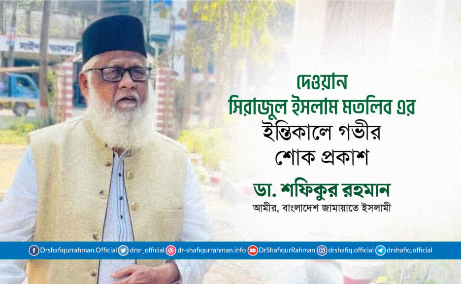 দেওয়ান সিরাজুল ইসলাম মতলিব এর ইন্তিকালে গভীর শোক প্রকাশ করে বাংলাদেশ জামায়াতে ইসলামীর আমীর ডা. শফিকুর রহমান ১৮ জুন এক শোকবাণী প্রদান করেছেন।