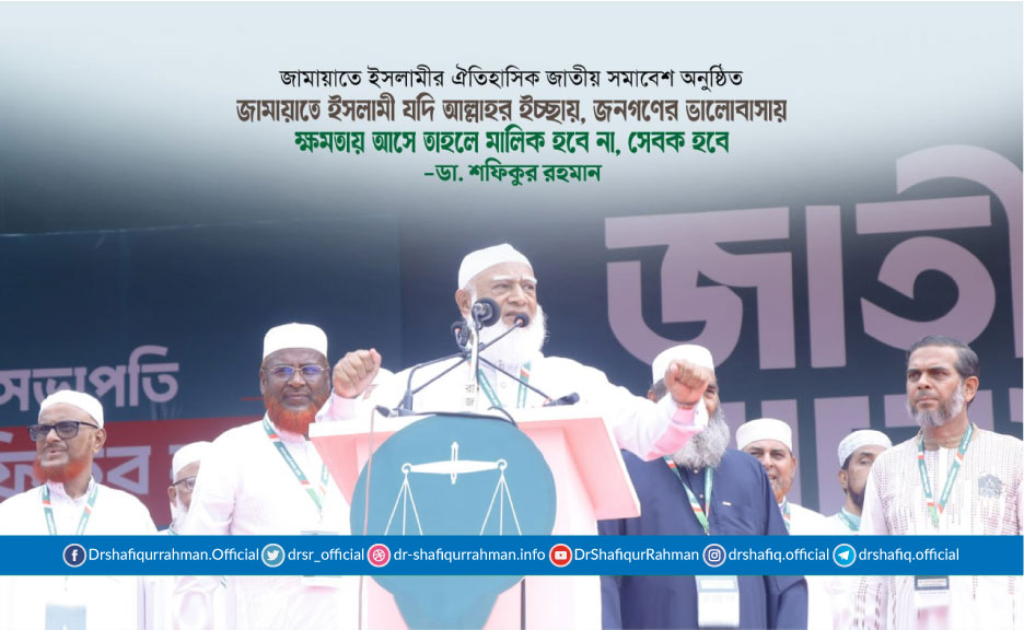 আজ কারা পালিয়েছে? জামায়াতে ইসলামীর কোন নেতাকর্মী পালায়নি। আমরা ৫৪ বছর বাংলাদেশ দেখলাম। কিন্তু ৫৪ বছরে বাংলাদেশের কোন পরিবর্তন হয়নি। ১৮ কোটি মানুষের ভাগ্য পরিবর্তন করতে হলে কুরআনের আইন দ্বারা দেশ পরিচালনা করতে হবে। আমরা আল্লাহর আইন ও সৎ লোকের শাসন চাই।