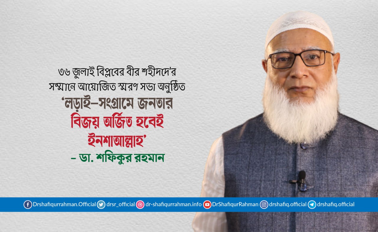 ২৬ জুলাই (শনিবার) বিকালে বাংলাদেশ চীন মৈত্রী সম্মেলন কেন্দ্রে জুলাই’২৪ শহীদ পরিবার সোসাইটি কর্তৃক ‘৩৬ জুলাই বিপ্লবের বীর শহীদদে’র সম্মানে আয়োজিত এক স্মরণ সভায় আমীরে জামায়াত এসব কথা বলেন।