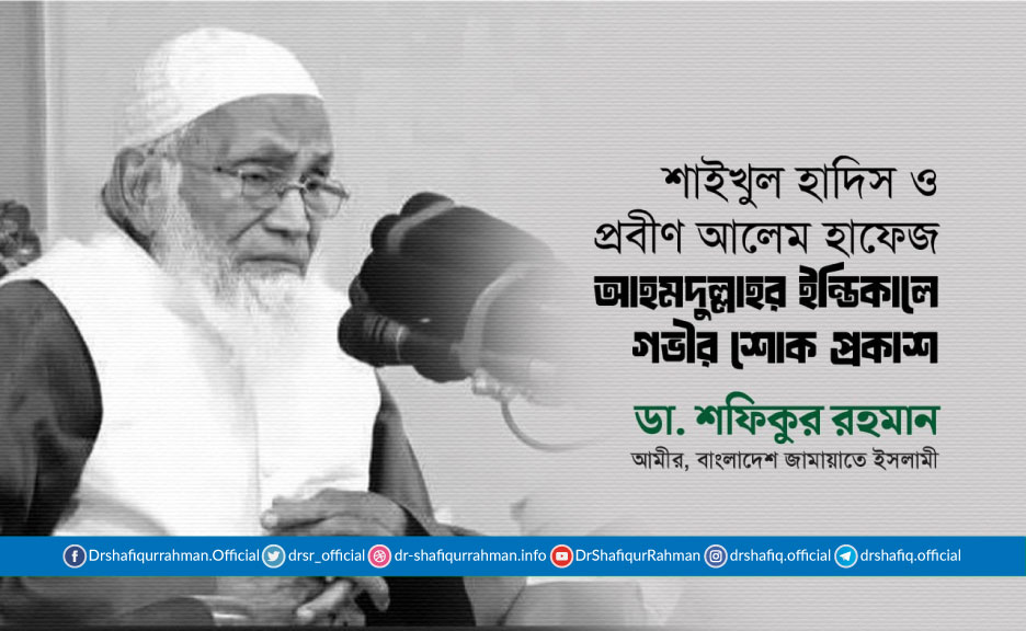 ঐতিহ্যবাহী দ্বীনি শিক্ষাপ্রতিষ্ঠান জামিয়া ইসলামিয়া পটিয়ার শাইখুল হাদিস, প্রধান মুফতি ও সদরুল মুহতামিম প্রবীণ আলেম হাফেজ আহমদুল্লাহর ইন্তিকালে গভীর শোক প্রকাশ করে বাংলাদেশ জামায়াতে ইসলামীর আমীর ডা. শফিকুর রহমান ১৪ সেপ্টেম্বর এক শোকবাণী প্রদান করেছেন।