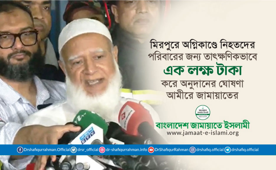 আমীরে জামায়াত নিহত ও আহতদের বিষয়ে খোঁজখবর নেন এবং নিহতদের প্রত্যেক পরিবারের জন্য তাৎক্ষণিকভাবে এক লক্ষ টাকা করে অনুদান ঘোষণা করেন। একই সঙ্গে এ বিষয়ে দ্রুত প্রয়োজনীয় ব্যবস্থা গ্রহণের জন্য সংগঠনের দায়িত্বশীলদের নির্দেশ দেন।