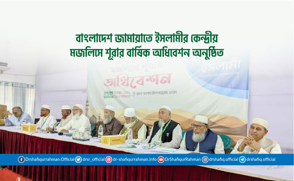 বাংলাদেশ জামায়াতে ইসলামীর কেন্দ্রীয় মজলিসে শূরার বার্ষিক অধিবেশন আজ ২৯ নভেম্বর সংগঠনের আমীর ডা. শফিকুর রহমানের সভাপতিত্বে মগবাজারস্থ আল-ফালাহ মিলনায়তনে অনুষ্ঠিত হয়। বৈঠকে দেশে বিরাজমান সার্বিক পরিস্থিতি পর্যালোচনা করে নিম্নোক্ত প্রস্তাব গৃহীত হয়:-