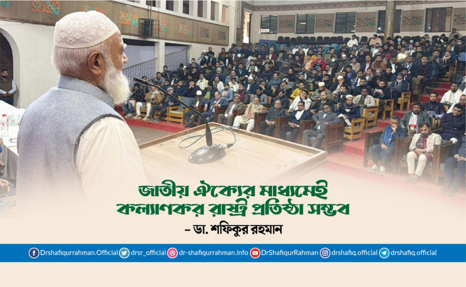 ডা. শফিকুর রহমান সবাইকে ঐক্যবদ্ধ হওয়ার আহ্বান জানিয়ে বলেন, আসুন আমরা সকলে মিলিতভাবে ন্যায় ও ইনসাফভিত্তিক একটি রাষ্ট্র প্রতিষ্ঠার লক্ষ্যে এগিয়ে আসি।