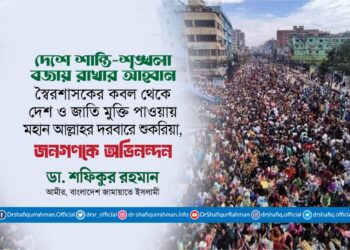 Read moreশতশত শহীদের রক্তের বিনিময়ে স্বৈরশাসকের কবল থেকে দেশ ও জাতি মুক্তি পাওয়ায় মহান আল্লাহর দরবারে শুকরিয়া, জনগণকে অভিনন্দন এবং দেশে...